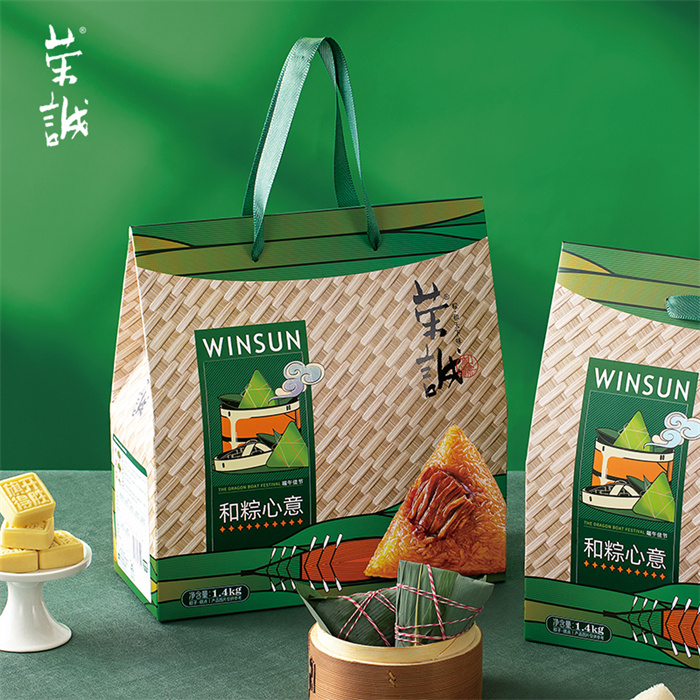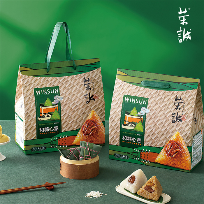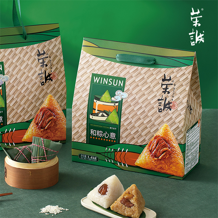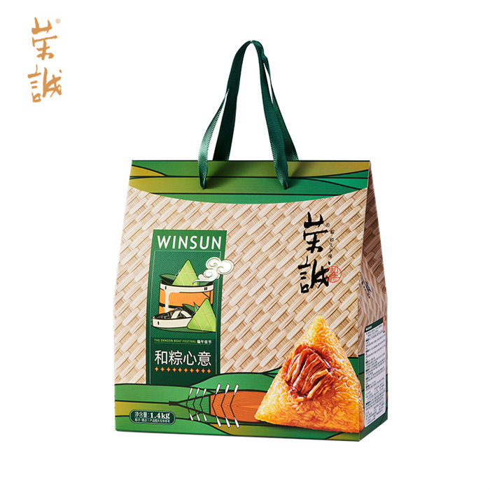 【编 码】 HZZ2402(25) 【条形码】 6925755533594 【尺 寸】 29.5x31x13cm 【净含量】 1.4kg 【规 格】 1.4kgx6盒/箱 【内容物】 100g经典肉粽x2,100g板栗肉粽x2,100g香菇肉粽x2,100g豆沙粽x2,100g蜜枣粽x2,100g花生莲子粽x2, 25g定胜糕(绿豆原味)x8