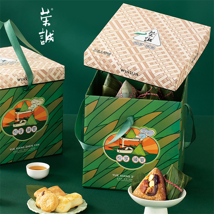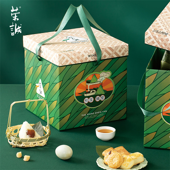 【编 码】 HZZ2406 【条形码】 6925755536489 【尺 寸】 25x25x25.2cm 【净含量】 1.64kg 【规 格】 1.64kgx4盒/箱 【内容物】 200g潮汕双烹粽(2粒),200g板栗肉粽(2粒),200g豆沙粽(2粒),200g蜜枣粽(2粒),360g咸鸭蛋(熟)(6粒),100g香焙杏仁酥(10块),100g香焙蔓越莓酥(10块),100g澳式金泊鸡蛋卷(芝麻原味)(8块),180g香妃凤梨酥(6块)