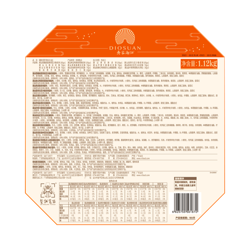 100g潮汕雪媚娘蛋黄绿豆沙酥皮饼x1+100g潮汕单丛鸭屎香茶酥皮饼x1+100g潮汕黄皮酥皮饼x1+100g潮汕蛋黄乌豆沙酥皮饼x1+70g潮汕五黑彩虹酥x1+70g潮汕青梅桑椹彩虹酥x1+70g潮汕柠檬卡曼橘彩虹酥x1+70g潮汕粒粒红豆芝士彩虹酥x1+70g潮汕生椰拿铁彩虹酥x1+70g潮汕百香果洛神花彩虹酥x1+30g潮汕报春红壳桃糕点(山楂蔓越莓)x3+30g潮汕金叶黄壳桃糕点(肉松)x3+10g香焙黑芝麻酥x6+10g香焙杏仁酥x6