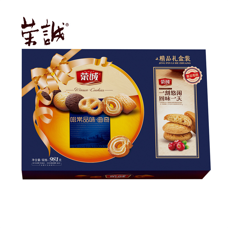 【编 码】 CGZ1901 【条形码】 6925755533495 【尺 寸】 40x9x27cm 【净含量】 981g 【规 格】 981gx6盒/箱 【内容物】 681g荣诚啡常品味曲奇x1,300g荣诚蔓越莓酥x1